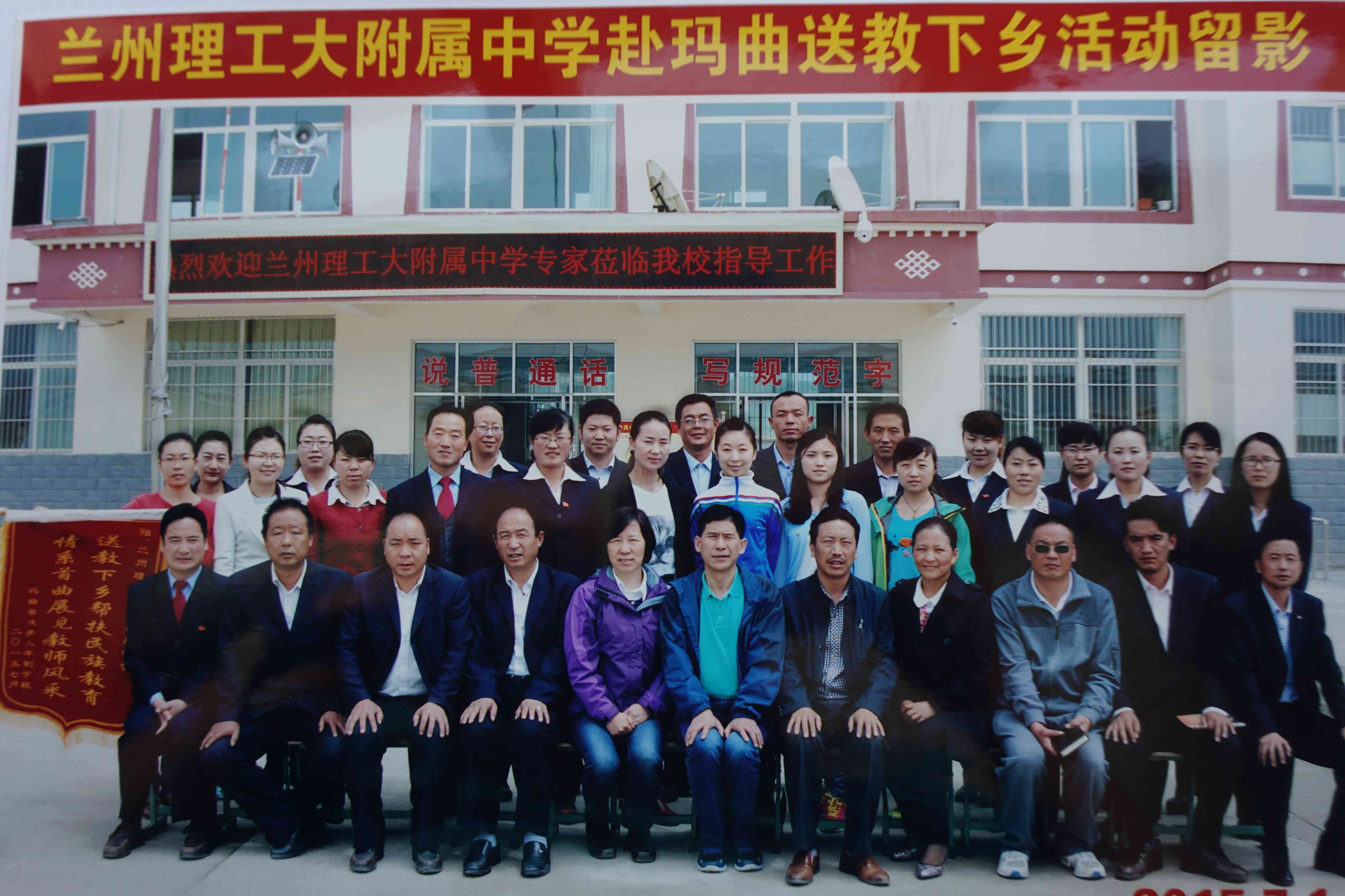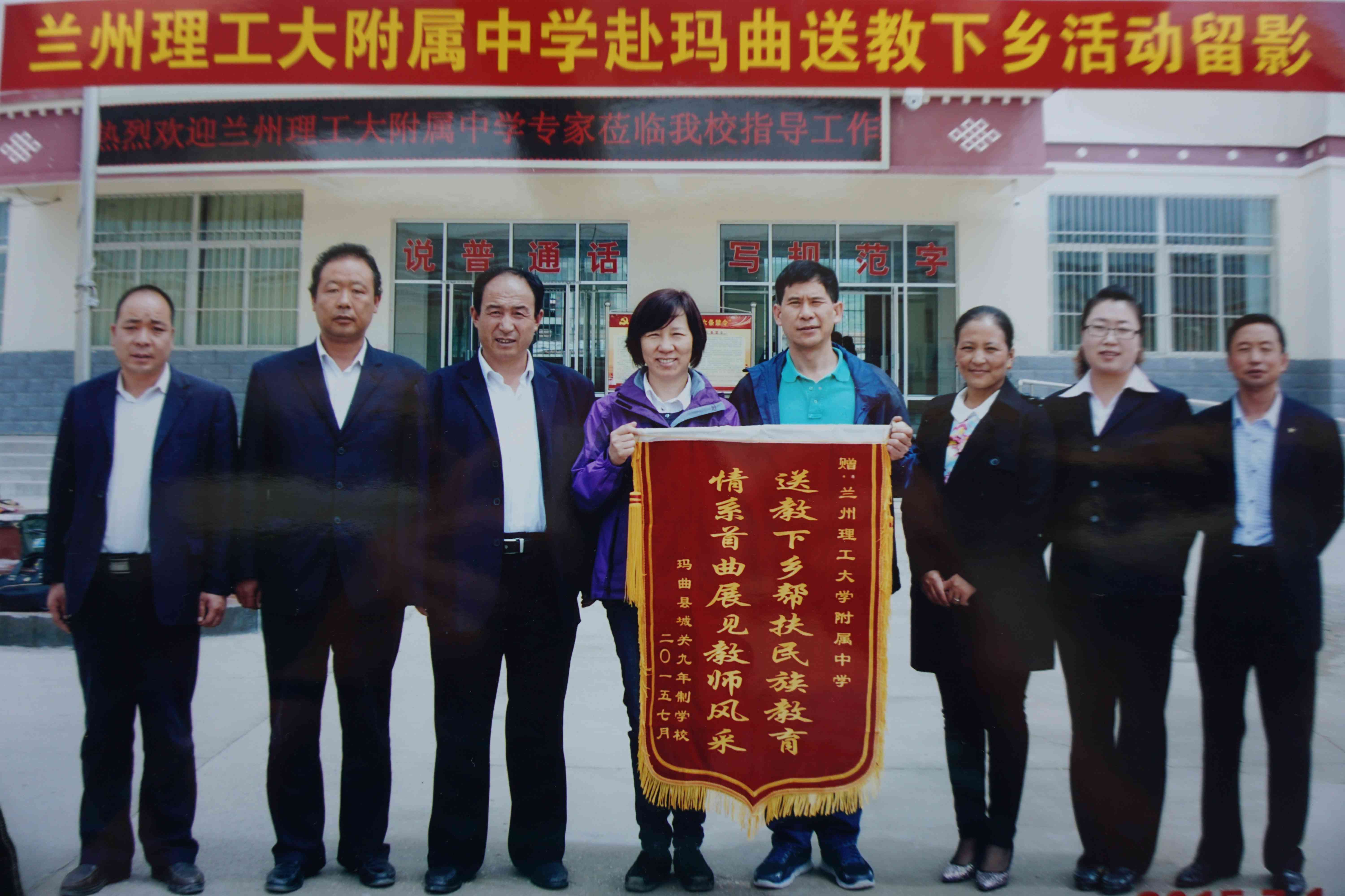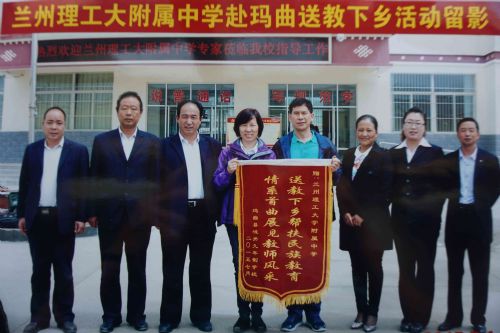 玛曲县教育局和城关学校给附中赠送了书写着“送教下乡帮扶民族教育,情系首曲展现教师风采”锦旗。