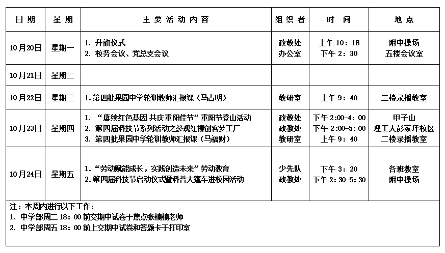 2025年秋季学期第九周周历