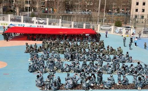 别看我们年纪小,志气比天高!稚嫩的童声喊出最响亮的誓言:“强身健体,保卫祖国!”